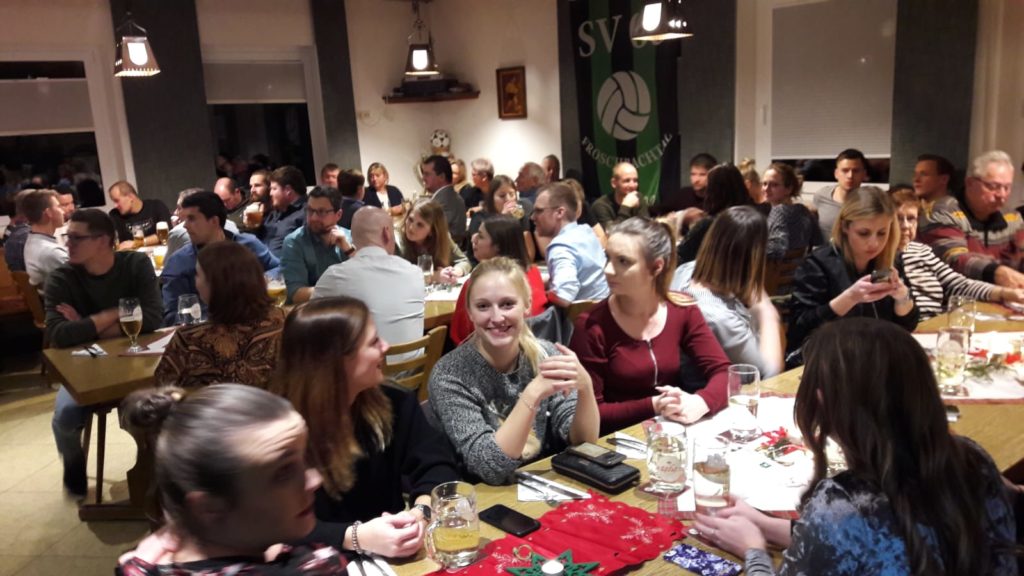 Am vergangen Freitag (6. Dezember 2019) feierte die SV 05 Froschbachtal ihre 15. Weihnachtsfeier. Der Abend stand im Zeichen der Goldenen Raute, denn diese wurde der SV 05 zum zweiten Mal verliehen. Außer der Ehrung für den ganzen Verein wurden noch einzelne Spielerehrungen und Ehrungen des BLSV und BFV durchgeführt. Auch der Nikolaus kam vorbei und hatte für einige Spielerinnen bzw. Spieler lobende, aber auch mahnende Worte mitgebracht.