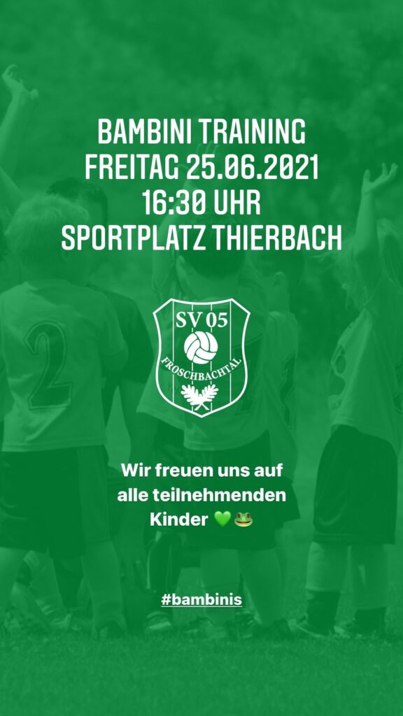 Das Bambini Training findet heute, 25. Juni 2021, um 16:30 Uhr statt (nicht wie die letzten Wochen um 16:15Uhr)!