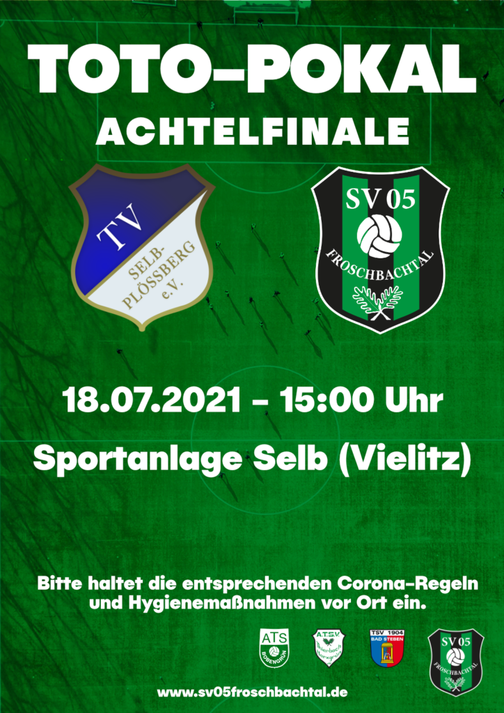 Der erste Gegner in der KO-Phase bzw. im Achtelfinale ist der TV Selb-Plößberg. Das Spiel gegen die Selber Jungs findet am kommenden Sonntag, 18. Juli 2021 um 15:00 Uhr auf dem Platz in des Turnvereins statt.