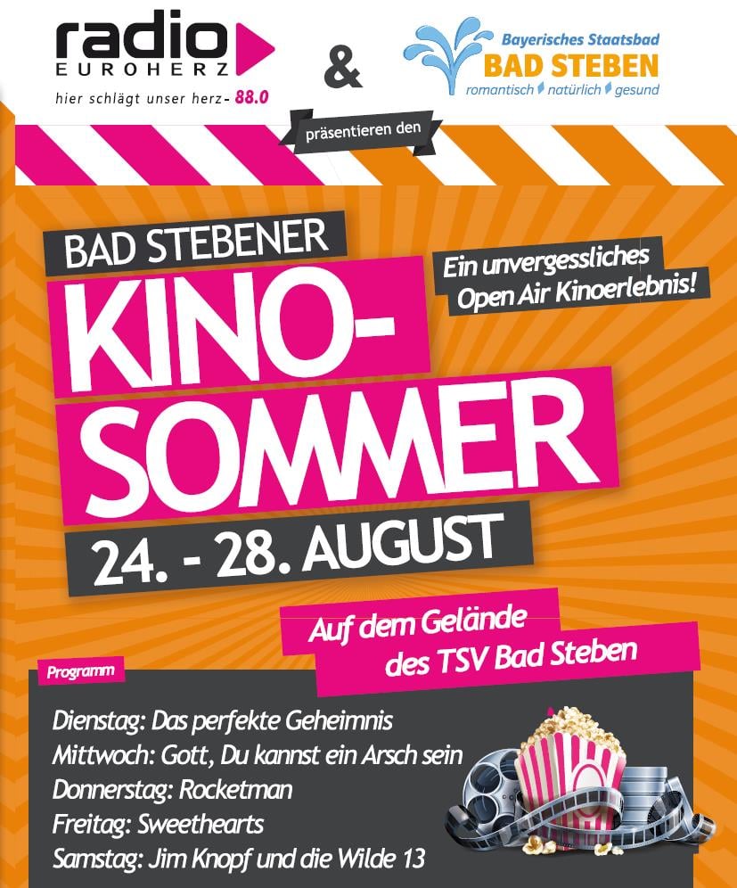 Ab heute Abend findet auf dem Gelände des TSV Bad Steben e.V. der Kinosommer von Radio Euroherz und Markt Bad Steben – offizielle Seite statt 🍿